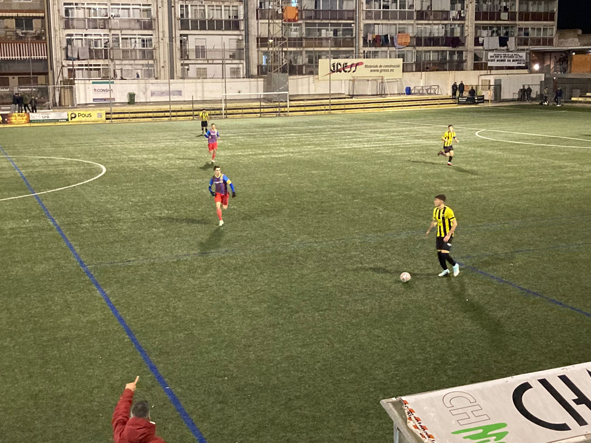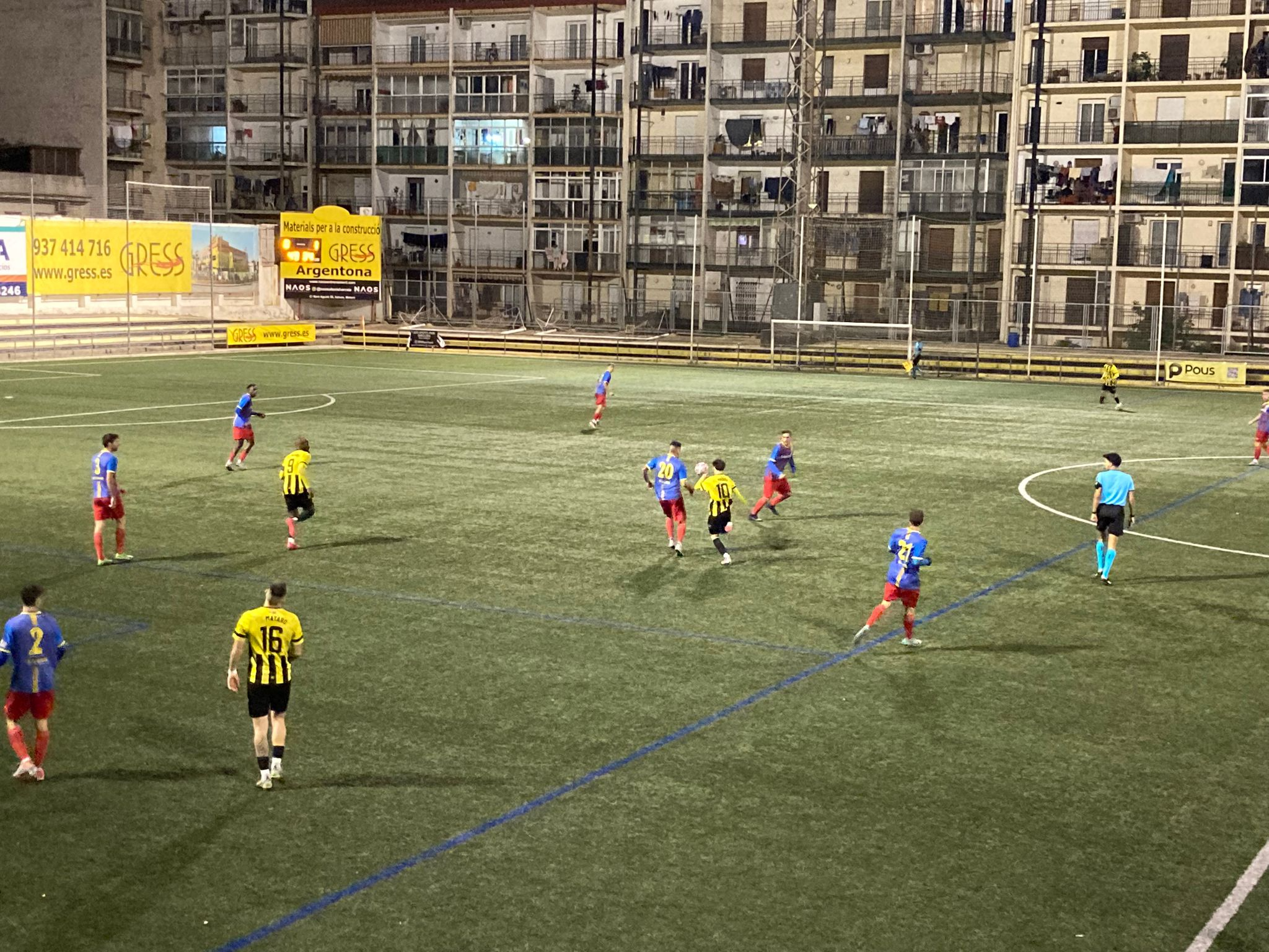 La primera meitat va ser tot un espectacle amb el CF Caldes dominant el terreny de joc, arribant al descans amb un avantatge de 0-1. El gol va arribar al minut 25, amb un remat de cap de Pesky després d'un córner. Malgrat la possessió majoritària del CF Caldes, l'EF Mataró va tenir una oportunitat des del punt de penal, però Juanmi va aturar el llançament. Poc després, un golàs de Carles Valls va ser anul·lat pel col·legiat per una possible mà. Amb bon ritme de pilota, intensitat i solidesa defensiva, el CF Caldes va mostrar un joc equilibrat amb eficàcia tant en atac com en defensa.