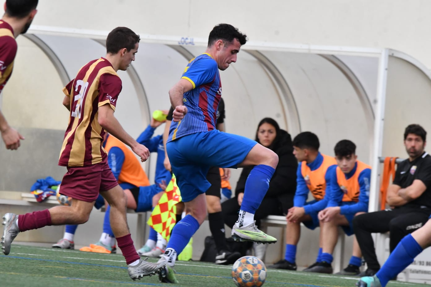 Des del començament, l'Argentona va imposar un ritme alt, exercint una pressió constant que va sorprendre el Caldes, incapacitant-lo de generar joc i mantenir la possessió de la pilota. Aquesta pressió va donar els seus fruits aviat, quan al minut 4, un xut des de fora de l'àrea va rebotar en un defensor del Caldes, desviant la trajectòria de la pilota i superant al porter local. La mala sort va continuar al minut 23, quan en un intent de desviació d'un defensor del Caldes, la pilota va quedar morta a la línia de gol, facilitant a l'Argentona posar el 0-2 en el marcador.