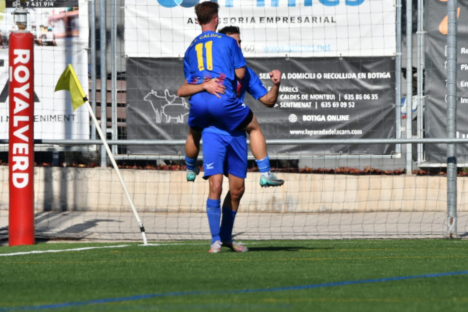 El segon gol del Caldes va arribar en una acció espectacular. Marc Angelet, al minut 35, va regatejar dos rivals i des de 30 metres va connectar un xut que va anar directament al travesser i al fons de la xarxa, fent pujar el 2-0 al marcador. Just abans del descans, Marc Estrada va tornar a aparèixer per marcar el tercer i deixar el partit pràcticament sentenciat amb un 3-0 al descans.