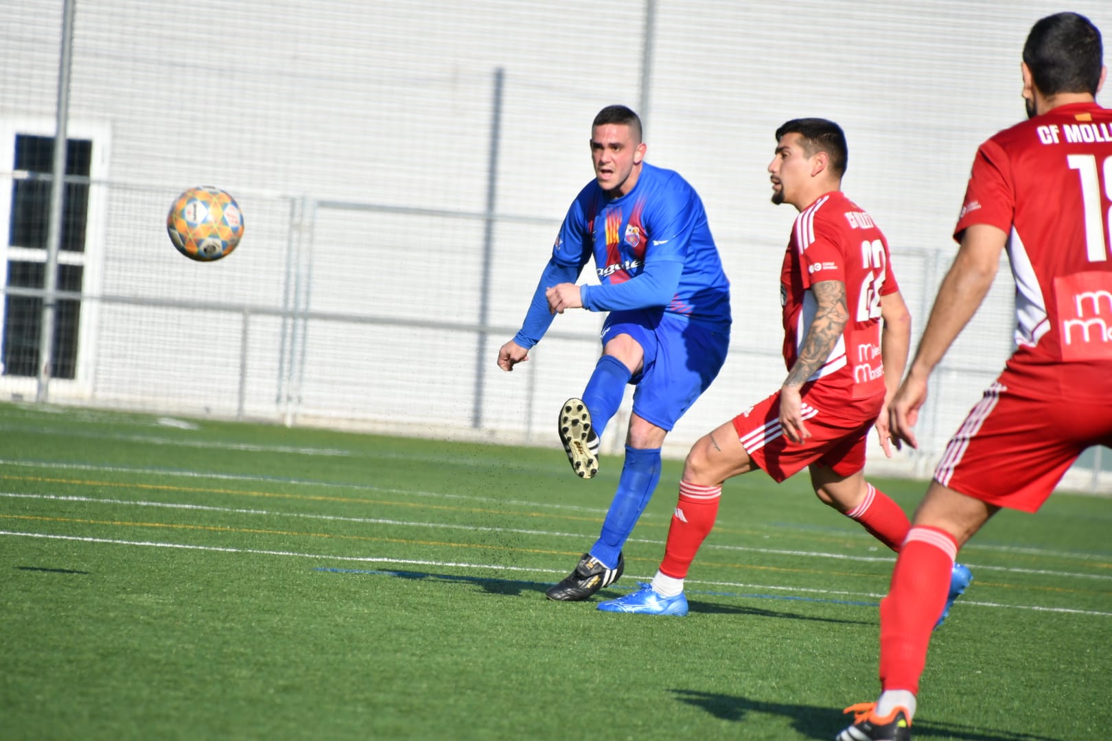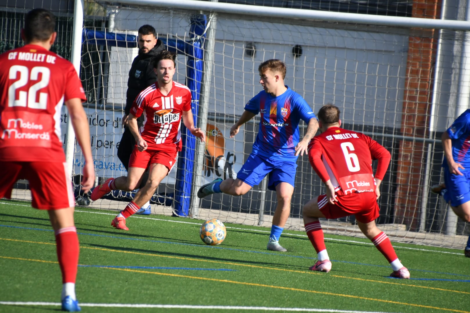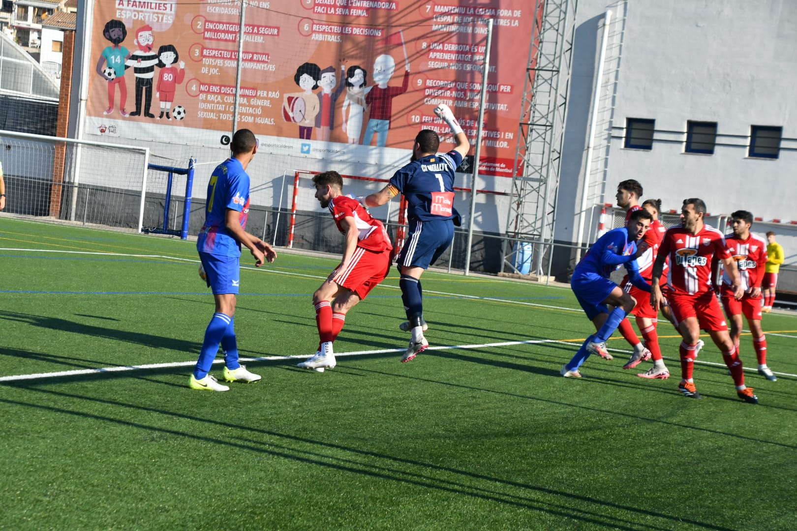 La segona part va començar amb la mateixa intensitat. El Mollet va tenir la seva gran oportunitat al minut 50, quan, després d’un servei de banda, una sèrie de rebots dins l’àrea local van deixar la pilota als peus d’Albert Jiménez. El davanter molletà va rematar, però Guillem González, providencial, va evitar el gol sota la línia.