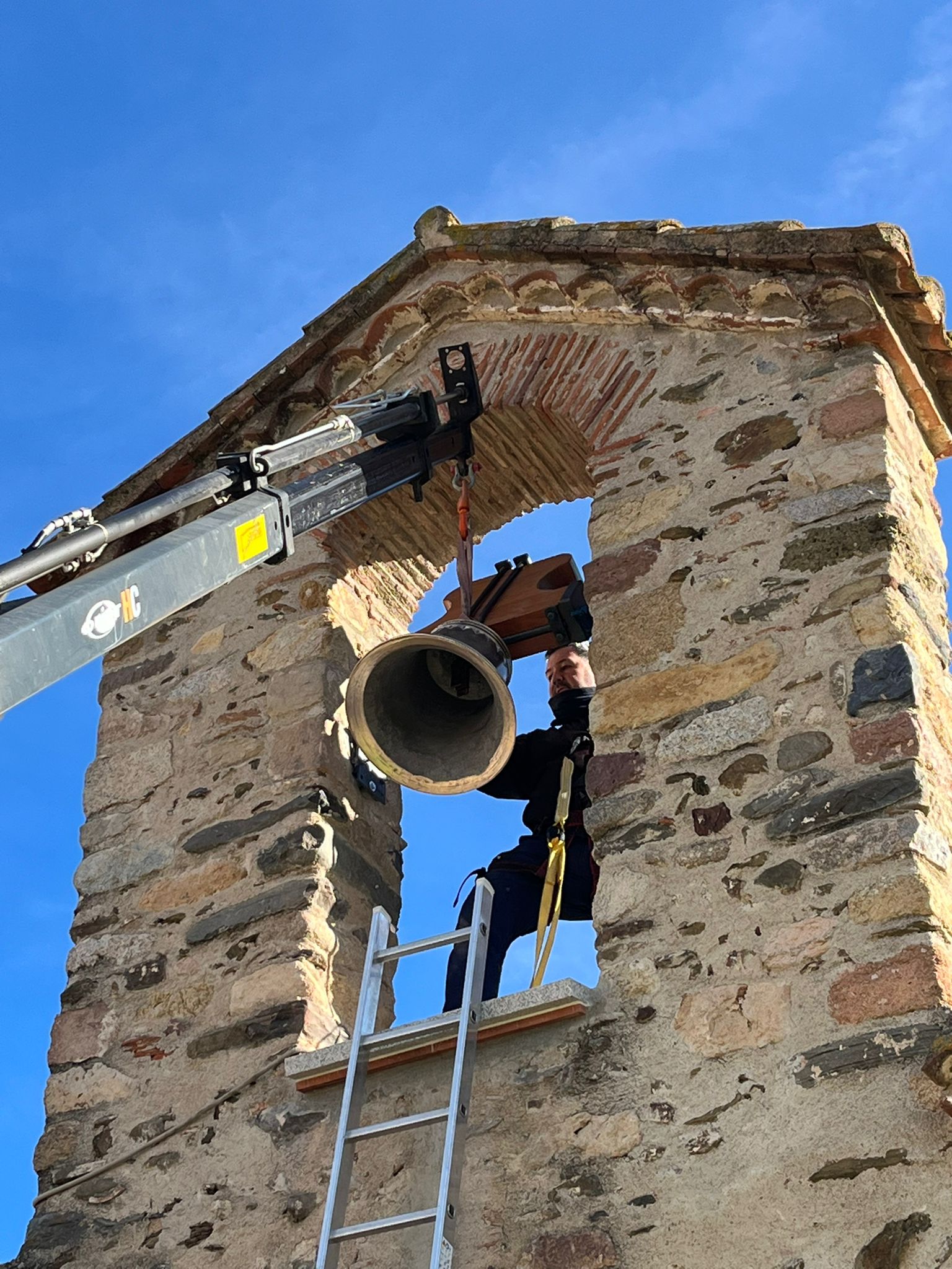 La campana, de 120 kg i fabricada a Girona, substitueix a la robada al setembre i es batejarà aquest diumenge per ser exposar-se al Museu Tomàs Balvey després de l’acte per evitar actes vandàlics