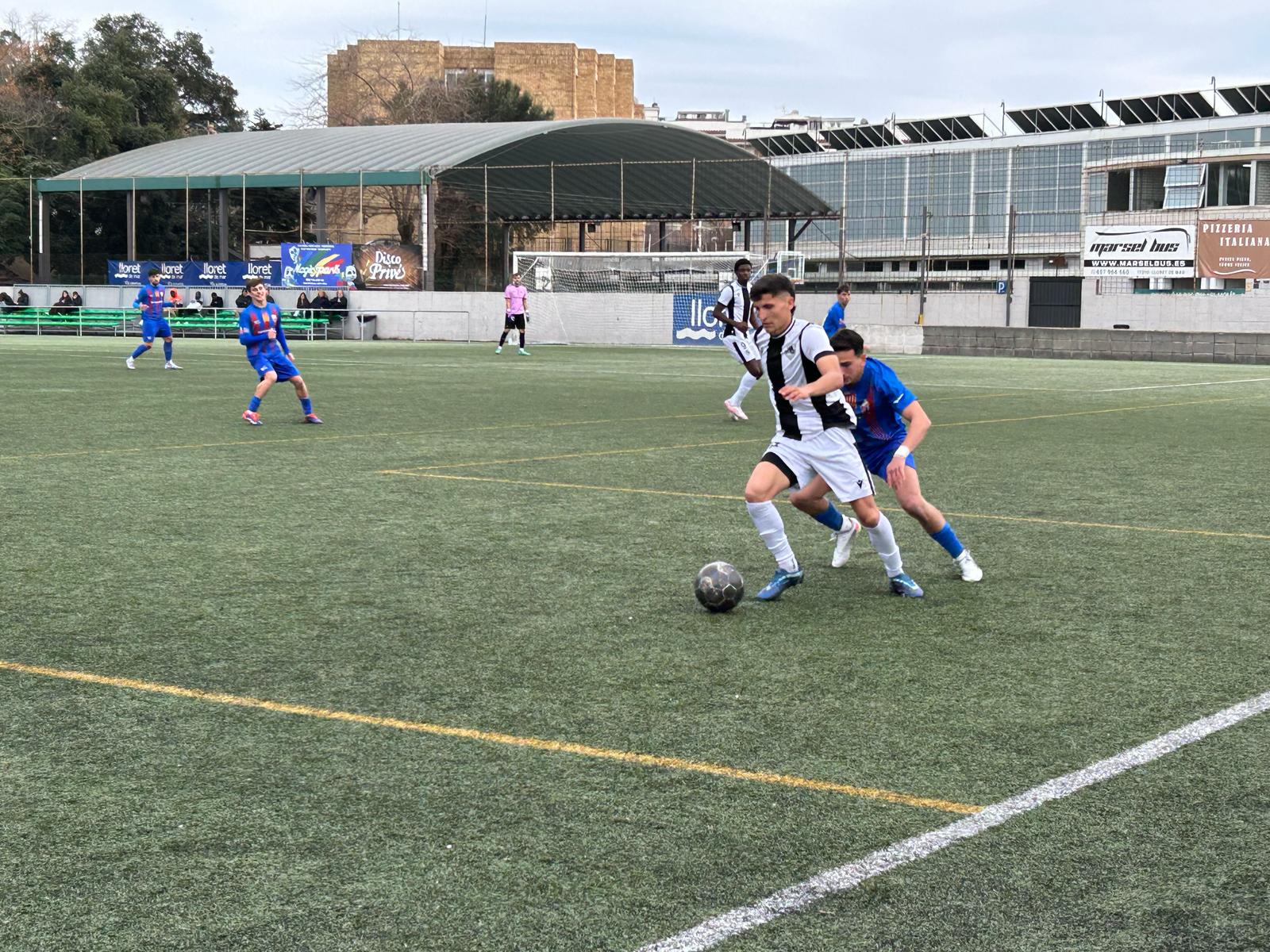 El gol que sentenciava el partit va arribar al minut 67. En una falta lateral del Juventus-Lloret, Nil Rueda va aprofitar un rebuig per iniciar un contraatac fulminant, assistint Eric Anglès, que es va plantar sol davant el porter i no va perdonar: 0-3.