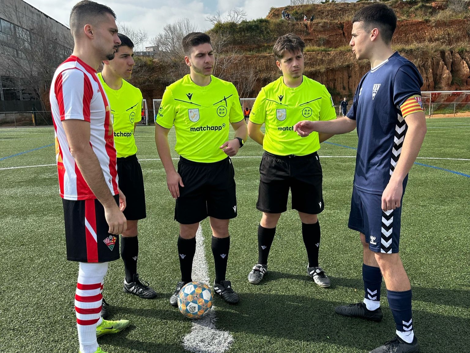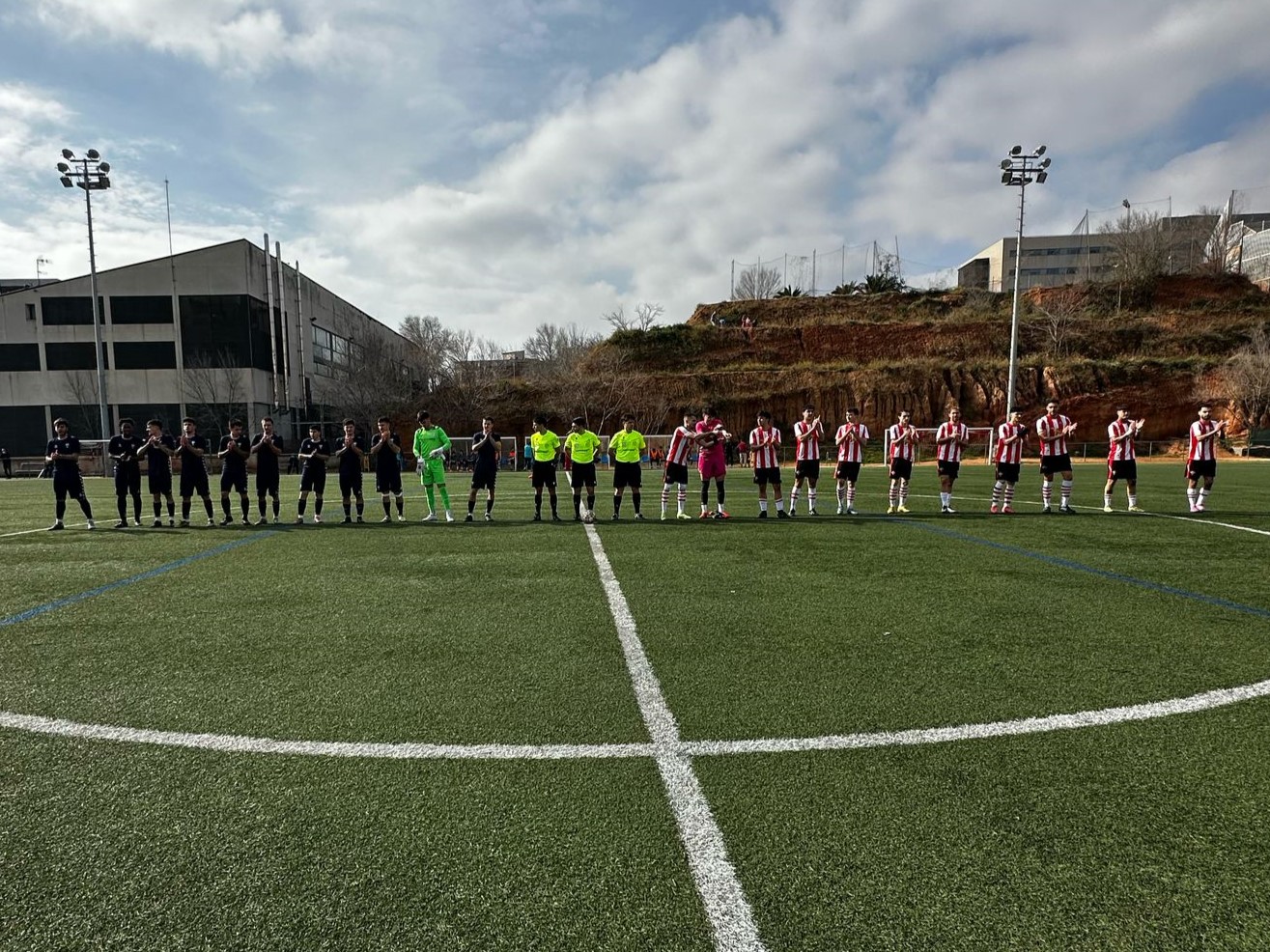Els visitants arribaven després d’una derrota ajustada contra el Mataró i necessitaven puntuar per sortir de la zona perillosa. L’equip va sortir amb energia i amb jugadors joves, aconseguint aguantar els primers 15 minuts davant els atacs constants de la Unificació Llefià. A més, van generar dues accions molt clares: una rematada de David Bach salvada sota pals i una centrada que es va passejar per la línia de gol sense trobar rematador.