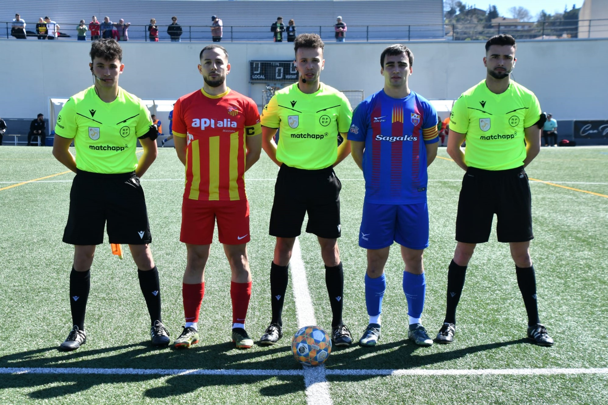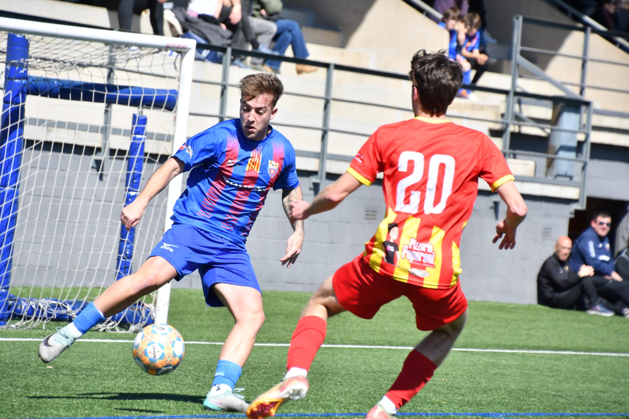 Els primers 45 minuts van transcórrer sense gairebé oportunitats de gol, amb un duel clarament dominat per les defenses. L’Argentona controlava la possessió, però sense arribar a generar perill real, mentre que el Caldes intentava aprofitar ràpids contraatacs que tampoc arribaven a fructificar. La primera meitat va acabar sense cap xut a porteria per part de cap dels equips, reflectint la igualtat amb un 0-0 al marcador.