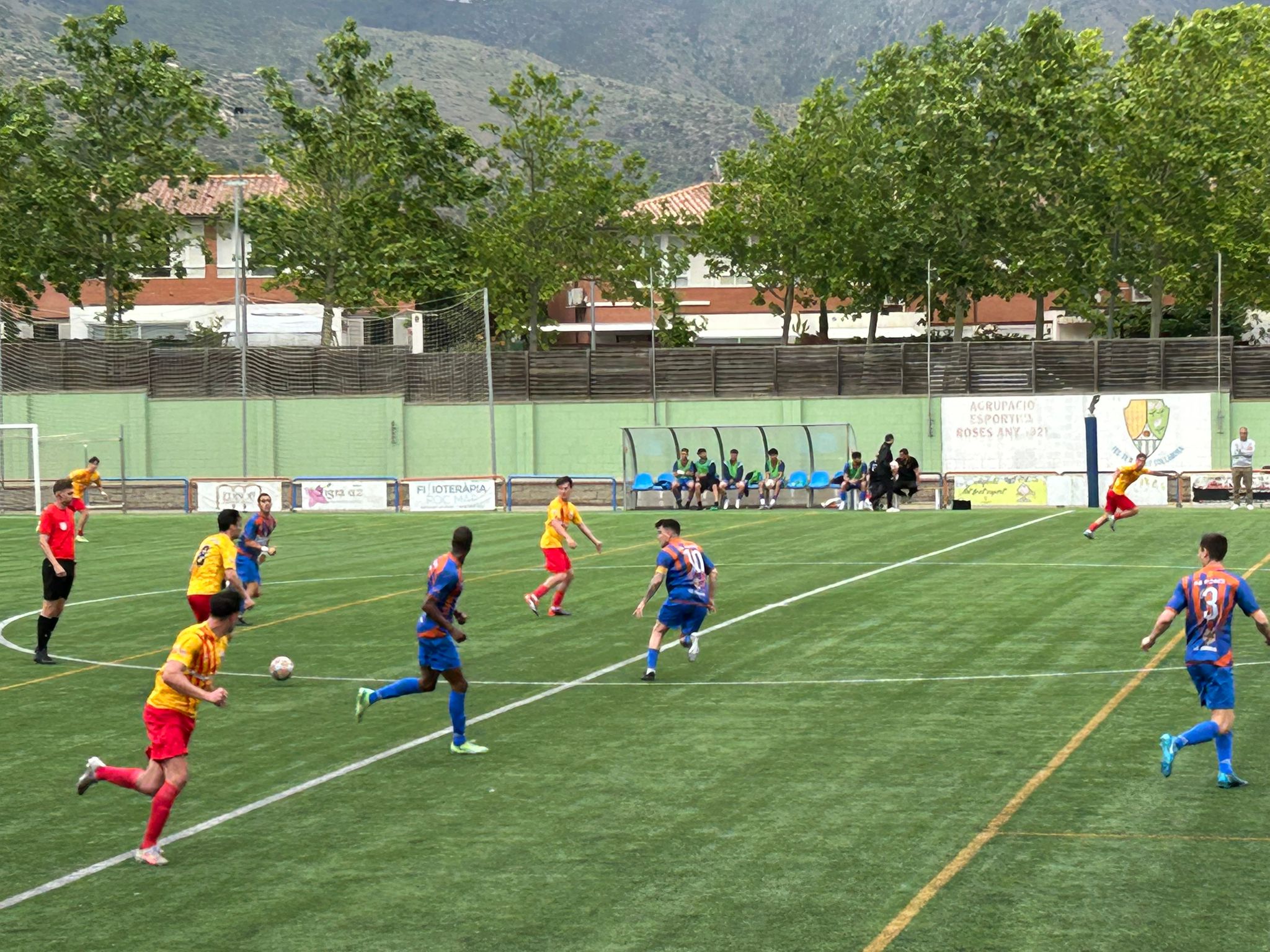 Tot i l’inici esperançador, el Roses es va refer ràpidament. Al minut 29, Riduan El Bassri va igualar el marcador després d’una gran acció individual dins l’àrea, posant l’1-1 al marcador. A partir d’aquí, el Roses va prendre el control del mig del camp i va dominar el ritme del partit fins al descans.