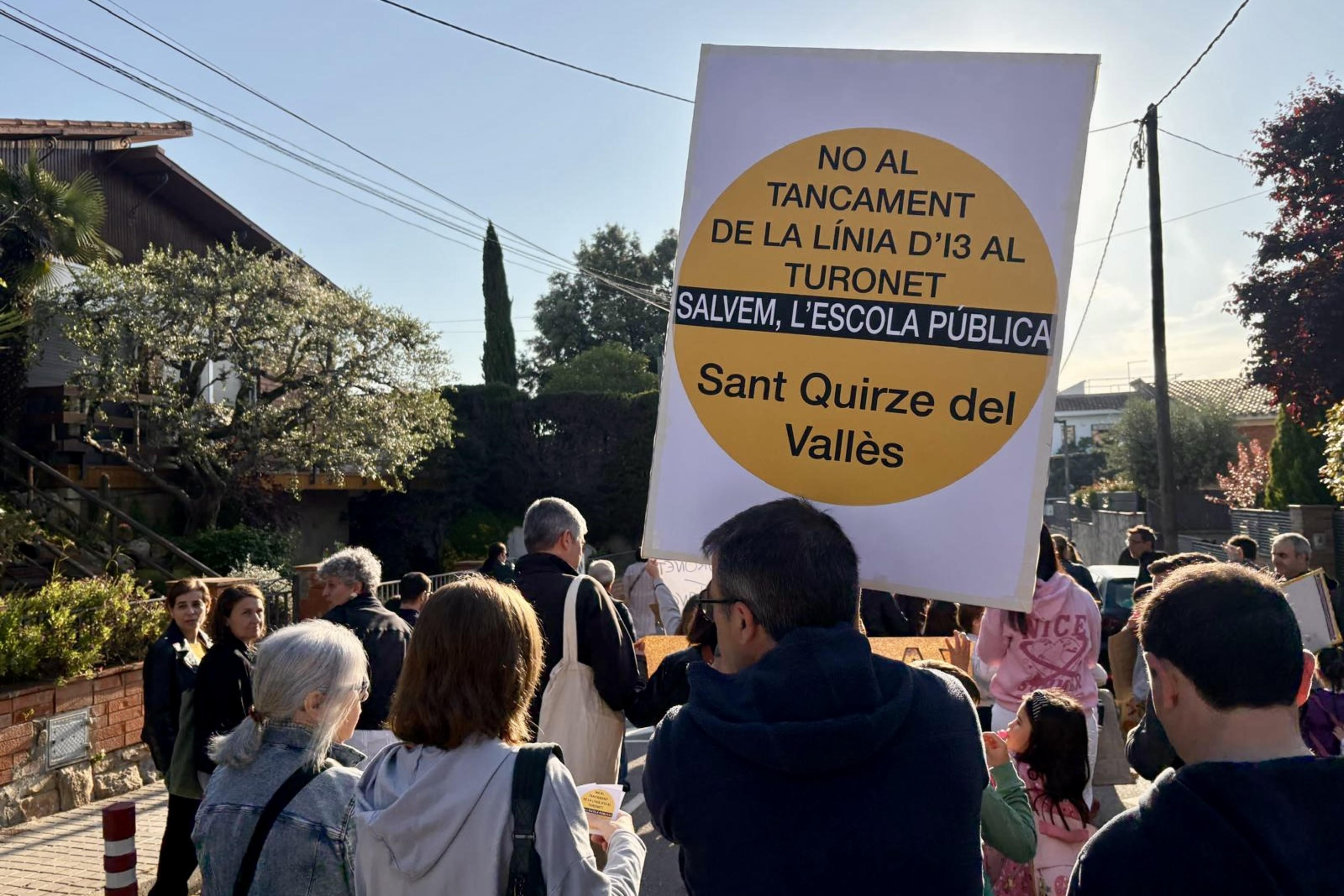 Més d’una cinquantena de famílies s’han mobilitzat ahir dimecres a primera hora del matí pels carrers de Sant Quirze del Vallès per protestar contra la possible supressió de la línia d’I3 a l’escola ‘El Turonet’, un dels centres educatius més veterans del municipi. La marxa, iniciada a les 8:00 h, ha recorregut diversos punts del nucli urbà i ha finalitzat amb el tall de trànsit a la rotonda que connecta amb Sabadell, a tocar de l’estació dels Ferrocarrils de la Generalitat de Catalunya (FGC).