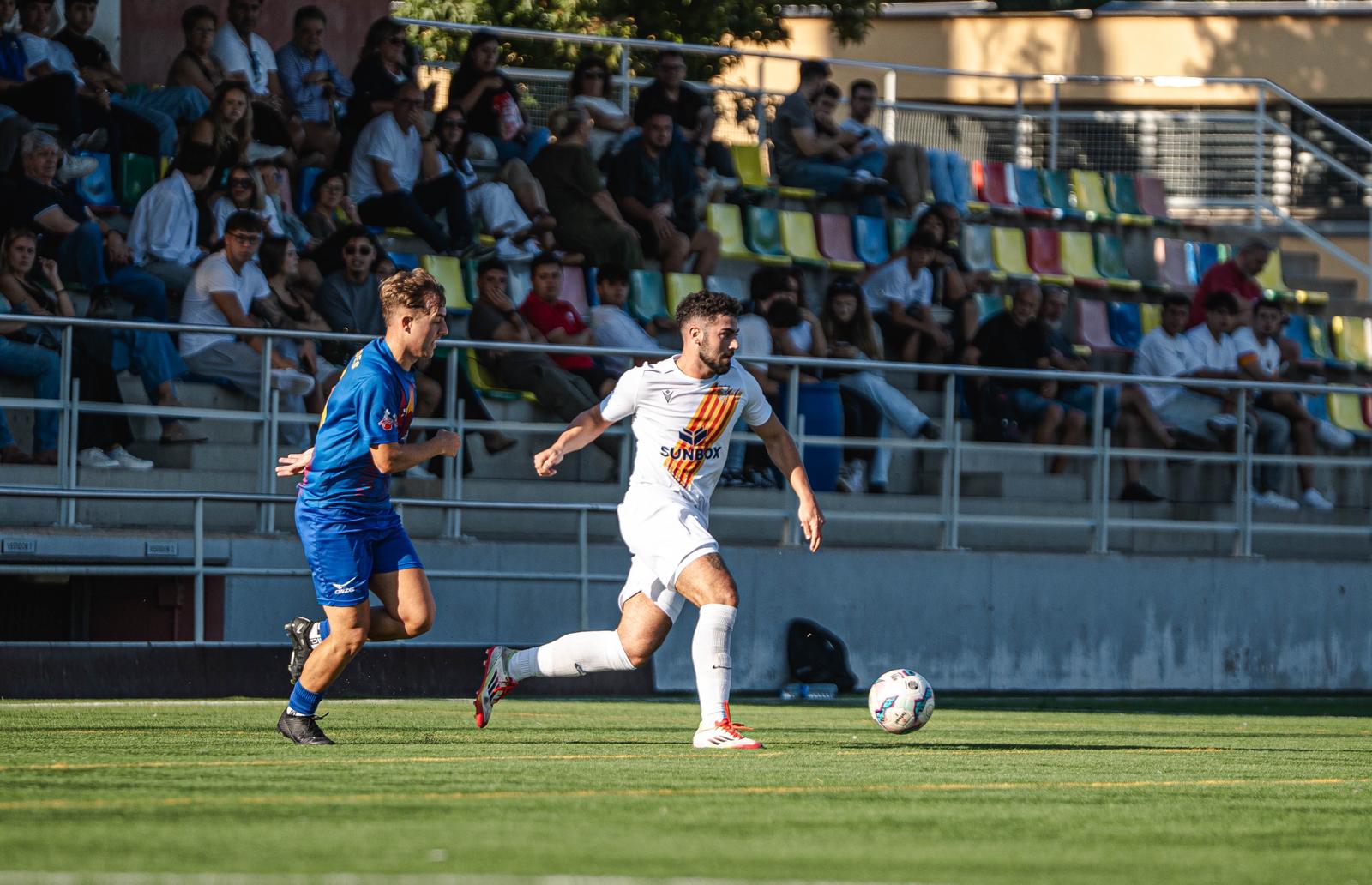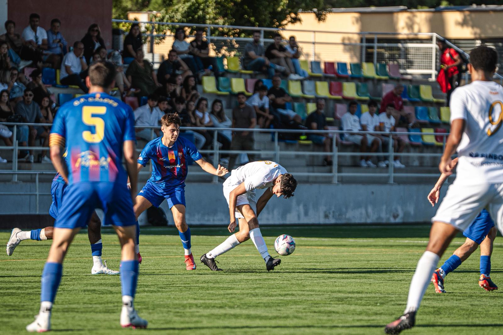 El duel va començar amb un Caldes valent i ben plantat, dominant la pilota i el ritme. Ja al minut 8, Aleix Monleon va aprofitar una passada llarga a l’esquena de la defensa per definir amb precisió i fer el 0-1.