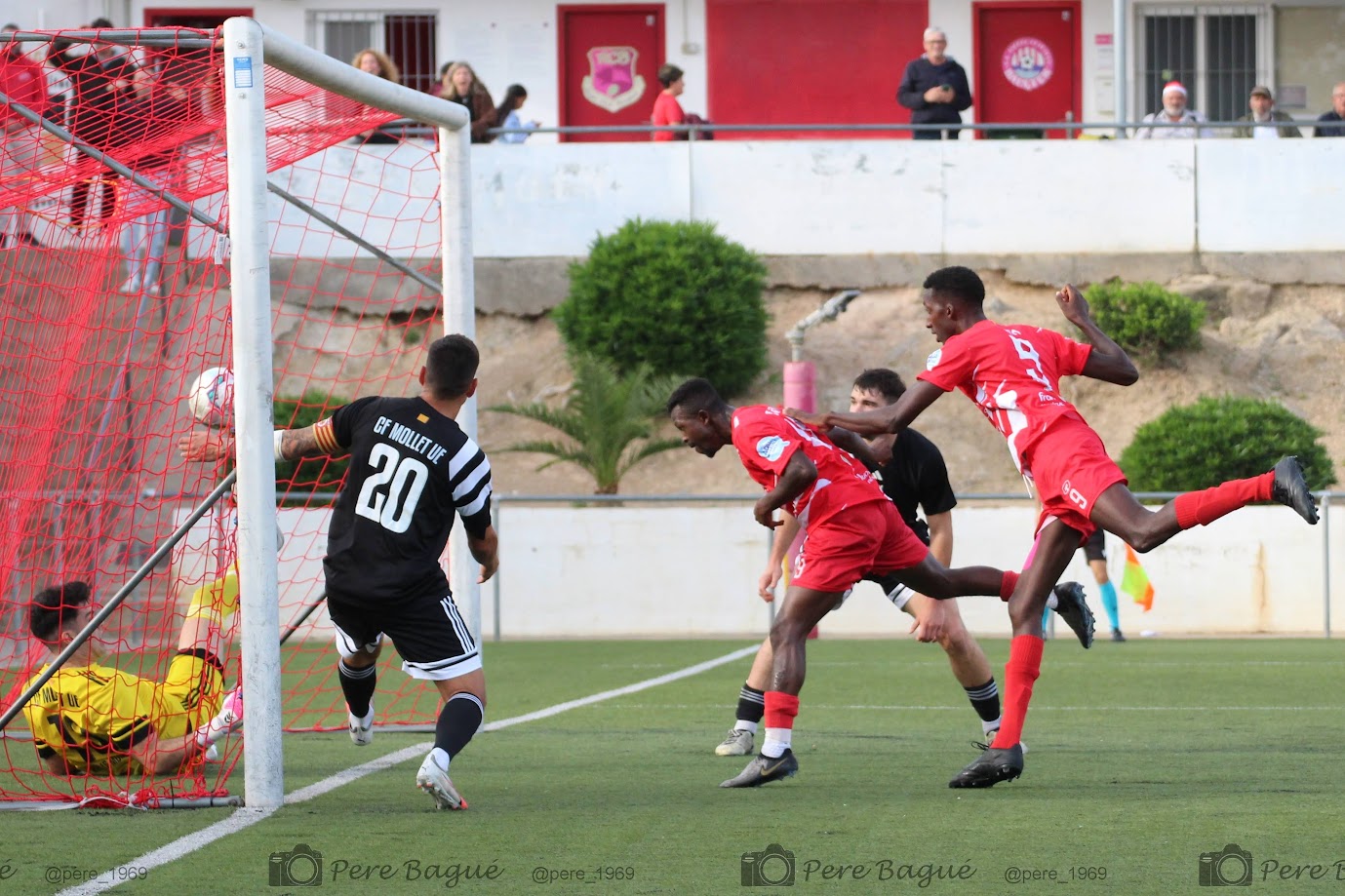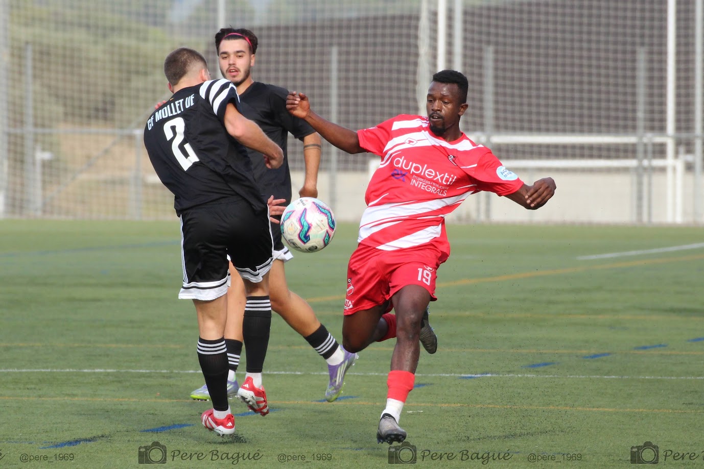 A la represa, el Mollet va sortir millor, amb control del joc i arribades per bandes. Tot i així, la falta d’encert de cara a porteria va pesar, i al minut 69, en un córner ben servit, Hagie Kandeh va rematar al fons de la xarxa per fer el 2-1.