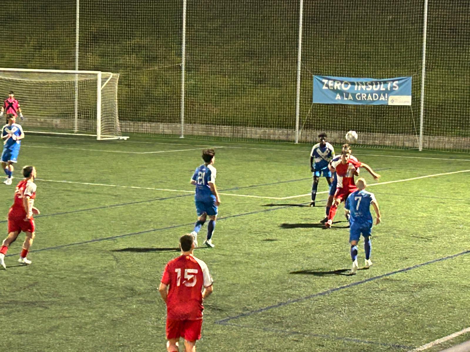 Al minut 32’, Pablo Aranda va sorprendre a tothom amb un xut llunyà des de més de 40 metres que va superar Pol Rovira i va significar l’1-0. Els vallesans van intentar reaccionar, però el marcador ja no es va moure abans del descans.