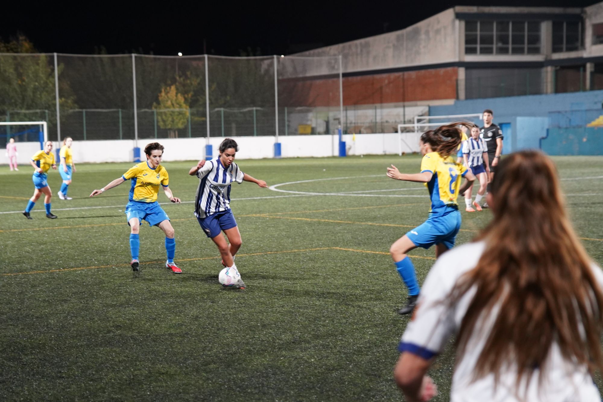 El partit va començar amb màxima energia de les visitants, que van sortir molt concentrades i amb ritme alt. Al minut 11’ de partit (2’ de la represa), després d’un córner rematat per Laia Ferrer al travesser, Paula Fernández va aprofitar el refús per obrir el marcador (0-1).