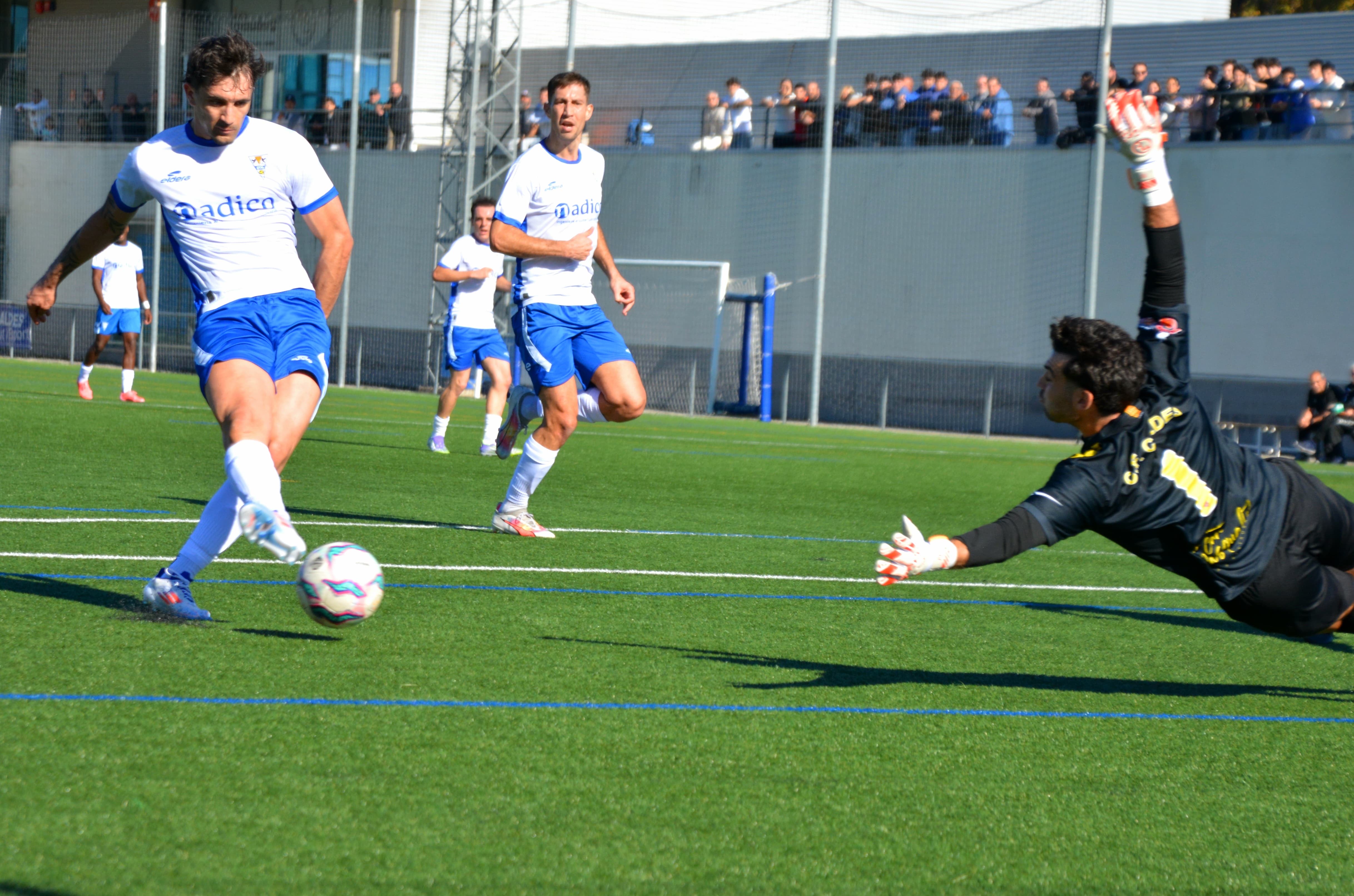 L’EC Granollers no es va fer petit davant les adversitats i va respondre amb una ocasió claríssima d’Iván Pérez, que es va plantar sol davant Juan Canales. El porter local, però, va salvar l’equip amb una intervenció providencial que va evitar el primer gol del matx.