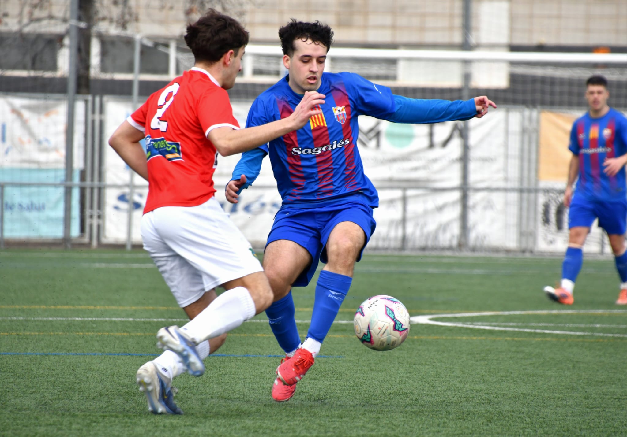 El partit va acabar d’inclinar-se encara més al tram final amb l’expulsió d’Albert Guiteras al minut 82 per doble groga, fet que va obligar els visitants a estirar-se encara més. Tot i això, ni tan sols amb nou minuts d’afegit, el Caldes va patir en excés, mostrant una gran maduresa competitiva fins al xiulet final.