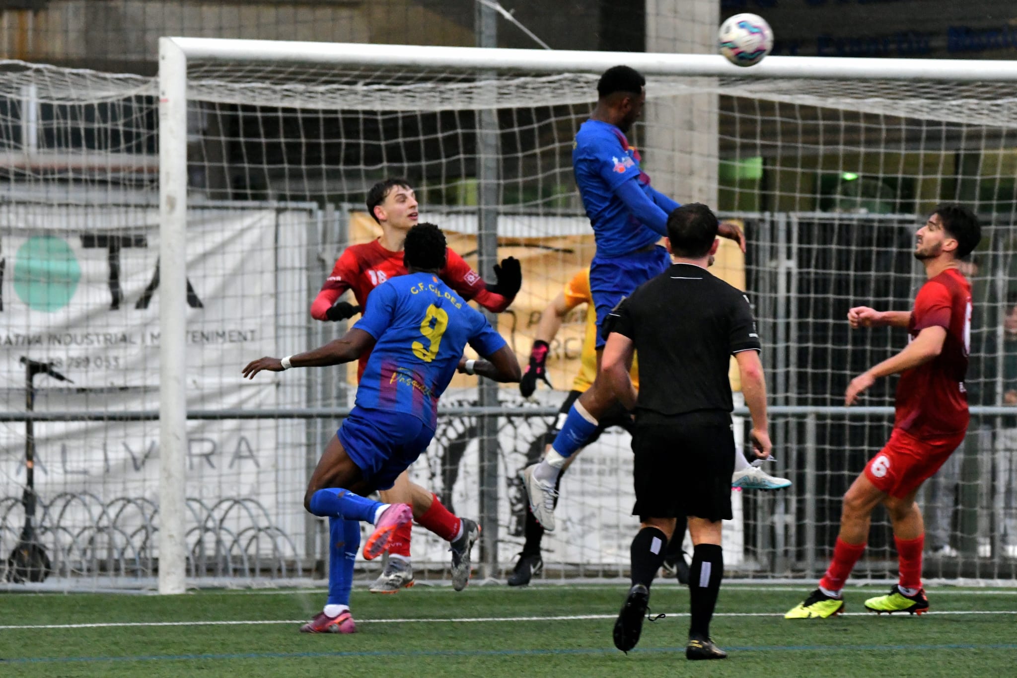 El duel va entrar en una fase de control, amb poques arribades clares a les àrees. Tot i això, al tram final de la primera part, els calderins van tornar a fer mal. Al minut 42, en un servei de cantonada, Arnau Fortuny va aparèixer al segon pal per rematar amb encert i situar el 2-0, un gol clau per marxar al descans amb un avantatge molt favorable.
