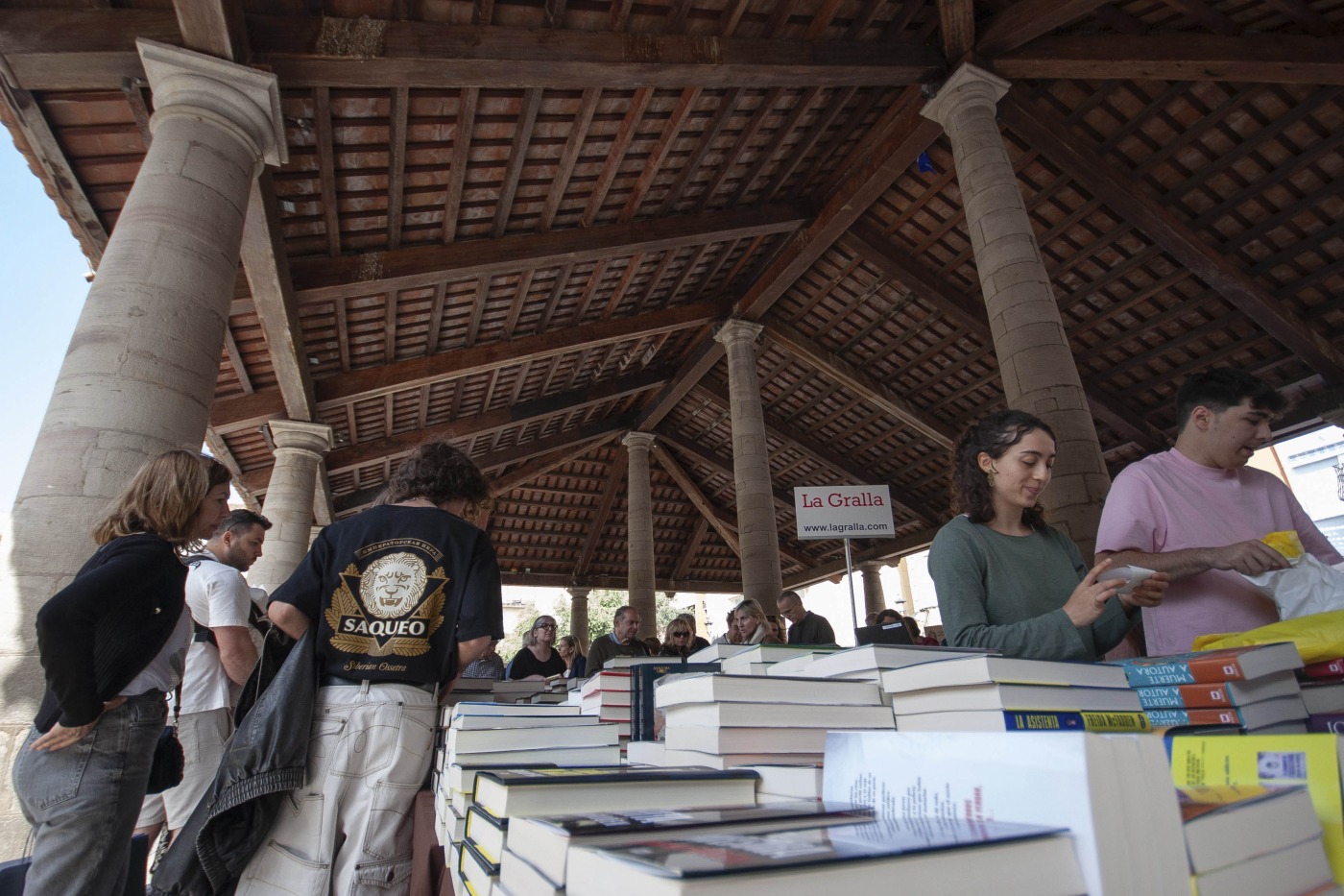 A les parades de llibres, la sensació és igualment positiva. Des de la llibreria La Gralla, Helena Ibáñez, responsable de la secció infantil, destacava el bon ambient: