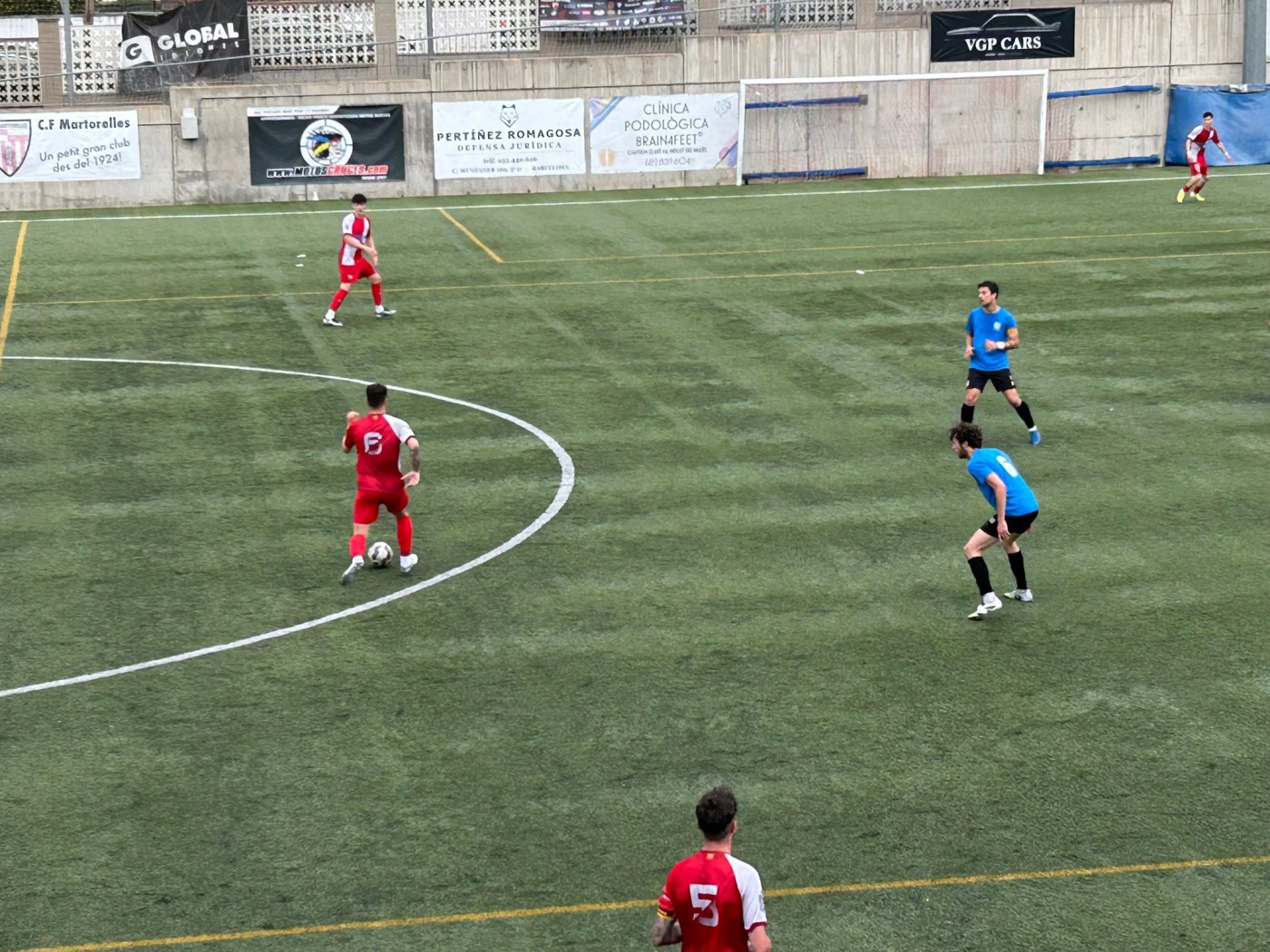 El derbi es va encendre encara més pocs minuts després. Al 26’, una jugada per banda esquerra va acabar amb el 0-2 de Pol Guirro, en una acció també molt discutida pel Martorelles per una possible mà en el remat.